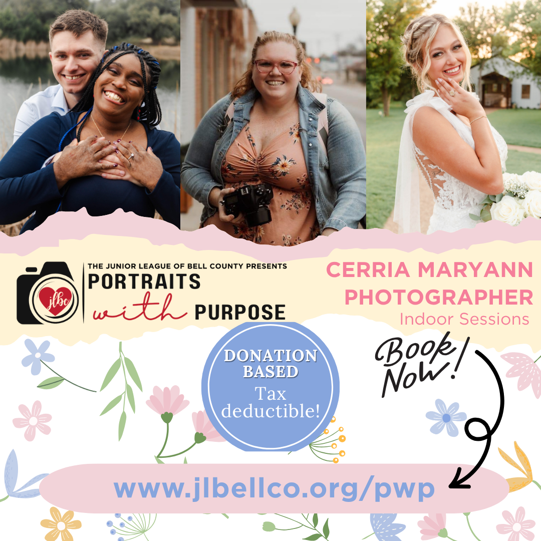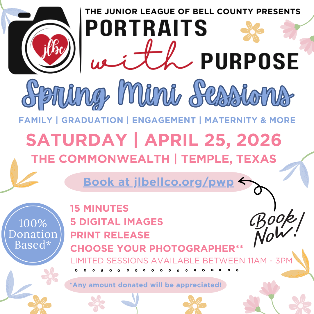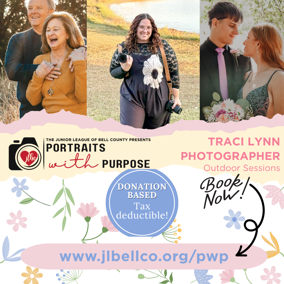 The Junior League of Bell County will be hosting its annual fundraising event, Portraits With A Purpose this spring. Perfect for family photos, graduation, engagement, maternity & more! We will be offering indoor & outdoor sessions. Please select which photographer you would like to sign up with below!